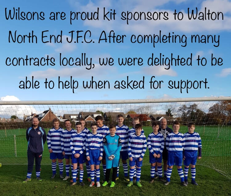 Wilsons Plastering and damp control are happy and proud kit sponsors of Walton North End JFC #SupportingLocalYouth.